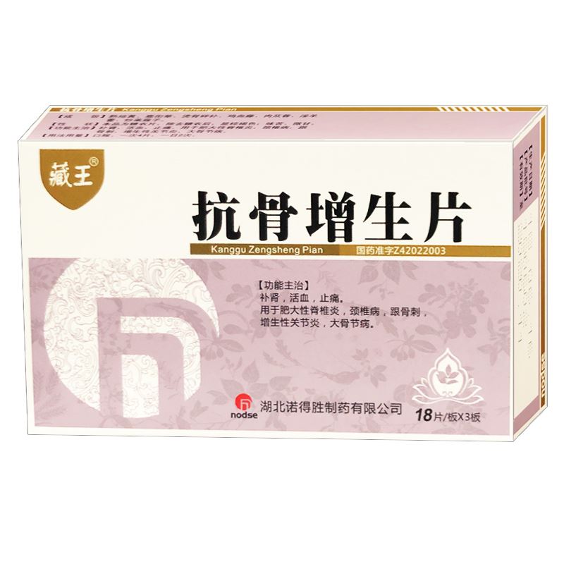 适用症/功能主治:补肾,活血,止痛。抗骨增生片用于肥大性脊椎炎,颈椎病,跟骨刺,增生性关节炎,大骨节病。